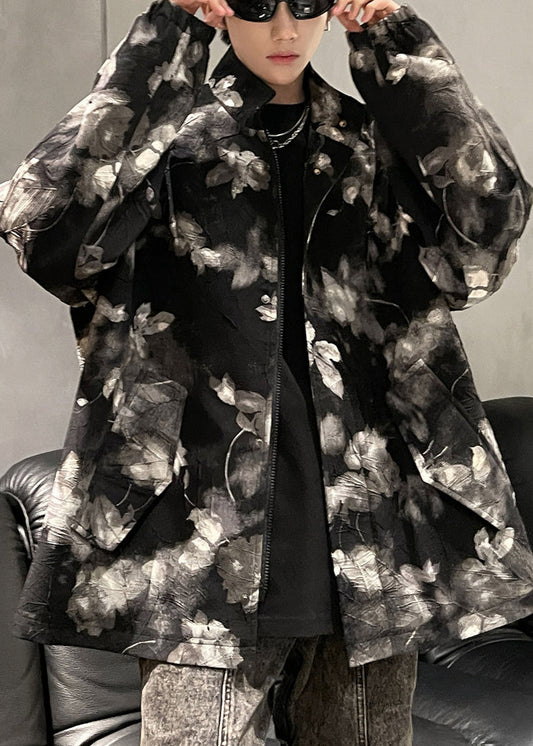 Art Black Print Zippered Pockets Men Coat Fall RO026