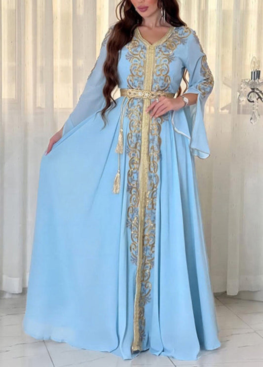 Boho Lose Mulberry Bestickte Patchwork Chiffon Maxi Kleid Herbst QL042