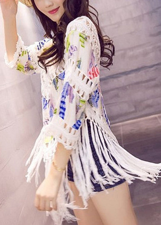 Boho Orange Print Quasten Patchwork Bikini Strandüberzug VC034