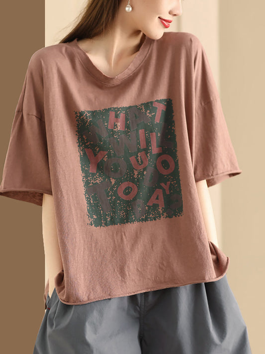 Damen Sommer Casual Print O-Ausschnitt Lose Baumwollhemd BN1020
