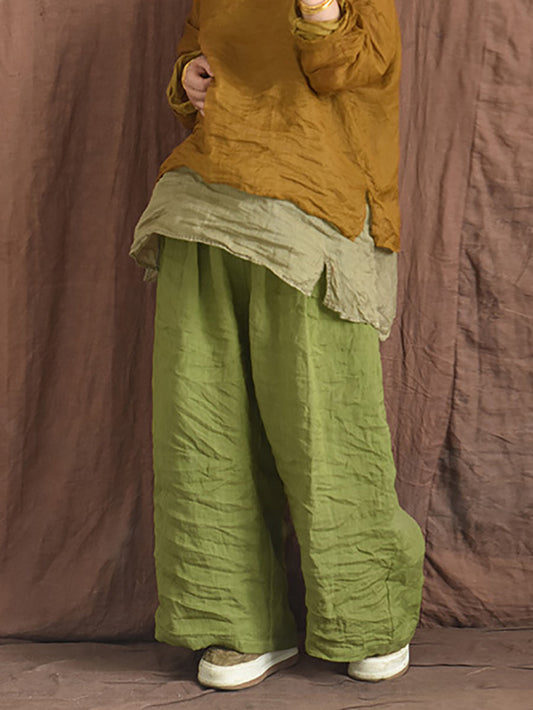 Damen Sommer Vintage Colorblock Lose Leinenhose OP1012