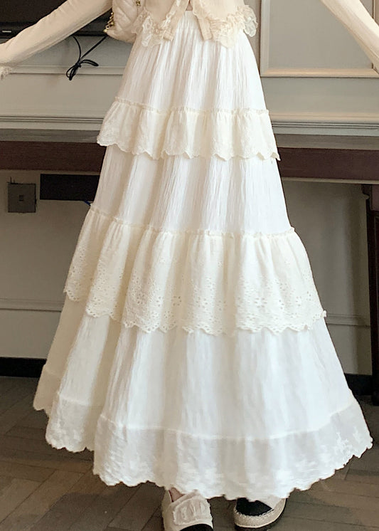 Handgemachte weiße Spitze Patchwork elastische Taille Baumwolle Röcke Sommer QQ1026