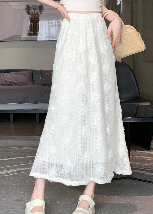Mode Vielseitig Weiß Floral Elastische Taille Baumwolle Rock Frühling QQ1025