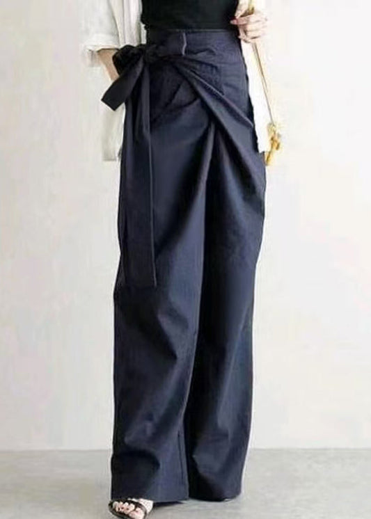 White Straight Boho Fall Linen Side Asymmetrical Tie Pants Waist