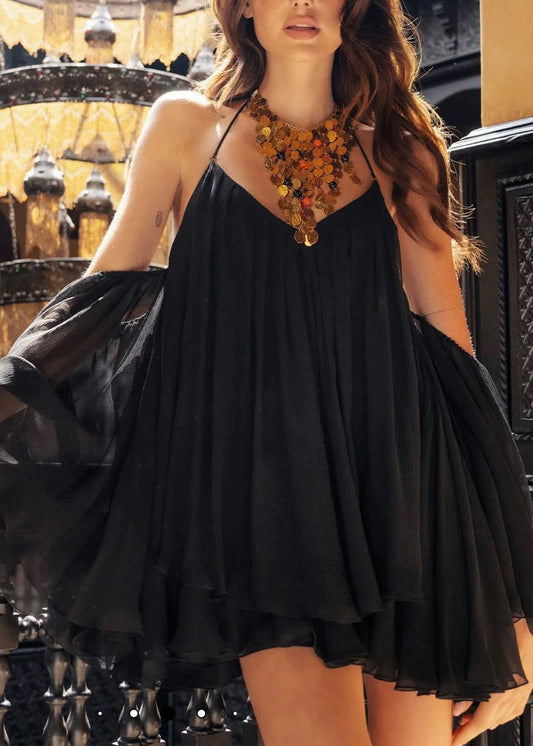 Sexy Rose V-Neck Sleeves Skirt Flared Backless Short