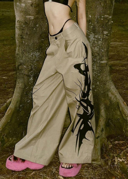 Neue Khaki Print Taschen Hohe Taille Baumwolle Hose Sommer PP007