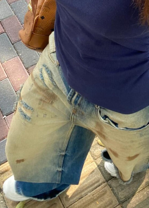 Retro Farbverlauf Loch Hohe Taille Denim Hosen Sommer PP014