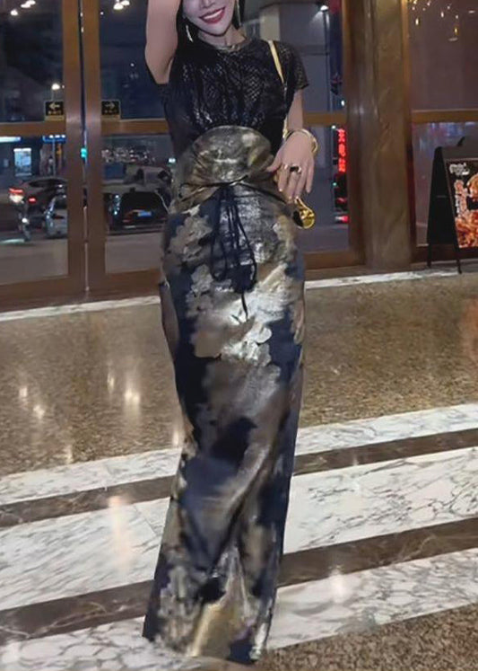 Französisches O-Ausschnitt-Top und bedruckte Röcke aus Baumwolle, zweiteiliges Set für den Sommer XX053
