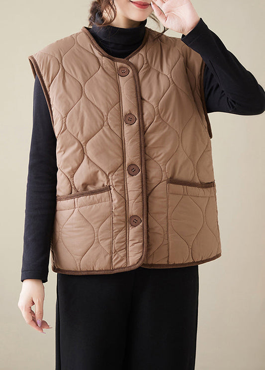 Coffee Pockets Fine Cotton Filled Women Retro Coats V Neck Winter RU019