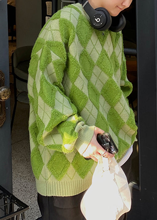 Neu Grün O Neck Gemütliche Patchwork Stricken Männer Pullover Herbst QH032