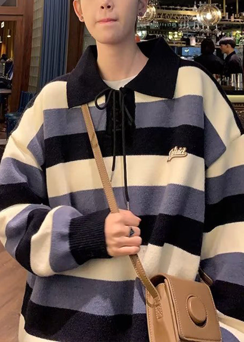 Neuer blau gestreifter gemütlicher Patchwork-Strickpullover für Männer im Herbst QH031