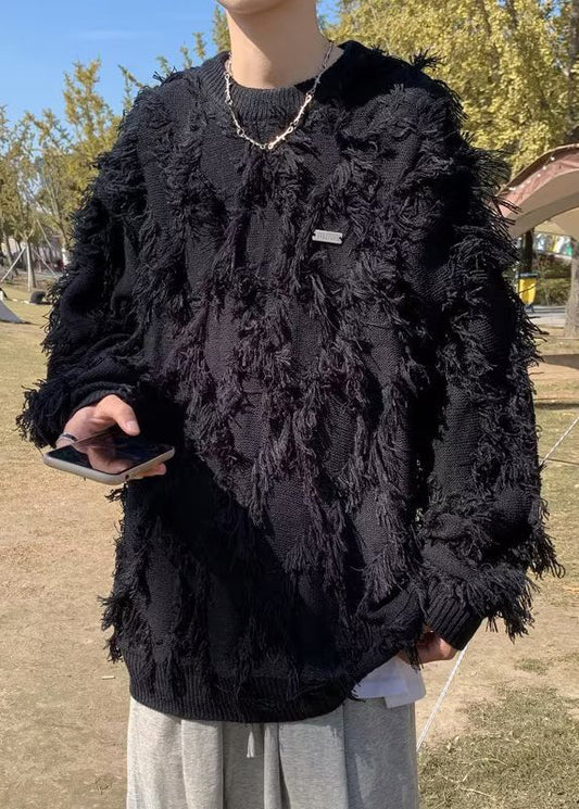 Neu Apricot Tasseled Solide Strick Männer Pullover Herbst QH018