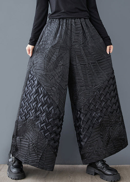 Wide Pants Design Original Black Leg Oversized Jacquard Summer