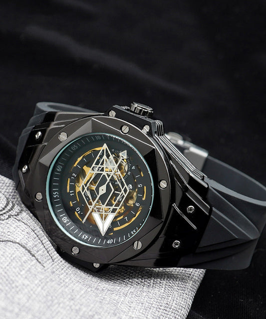 Machinery Out Hollow Leather Casual Black Watches Automatic Fully