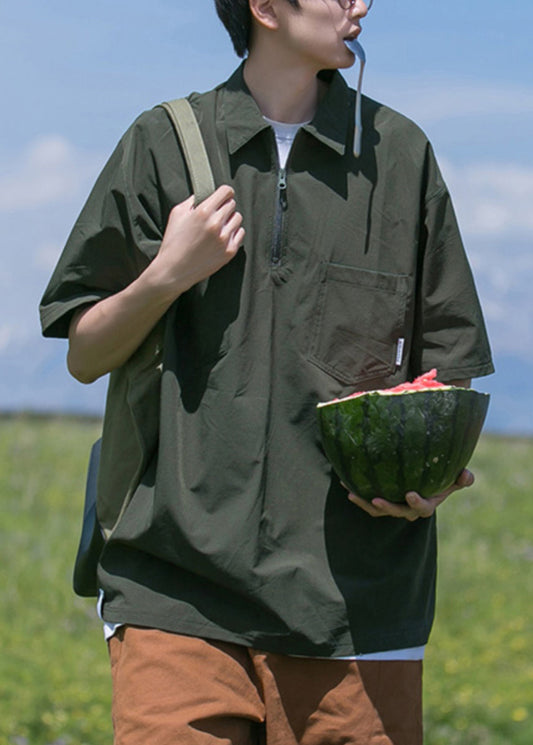 Pockets Black Zip Solid Shirt Men Polo Cotton New Summer Up