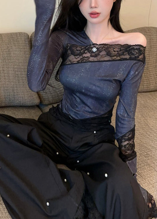 Women Black Hollow Out Patchwork Lace Tops YP016