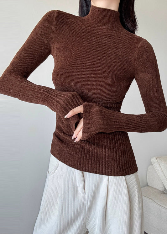 Brown Silm Fit Knit Sweater High Neck Spring YP027