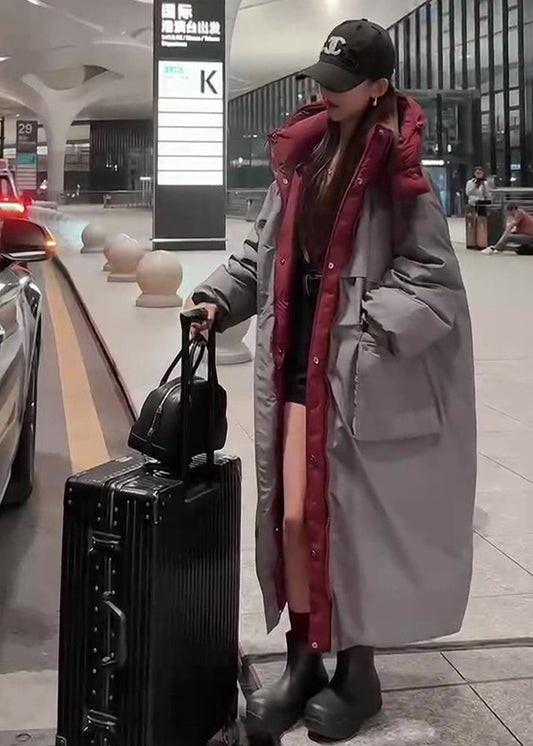 Stylish Grey Oversized Patchwork Duck Down Down Wear On Both Sides Trench Winter YO002