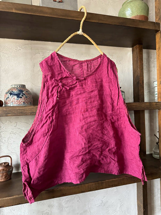 Frauen Sommer Vintage solide Schnalle Leinen Weste CC015