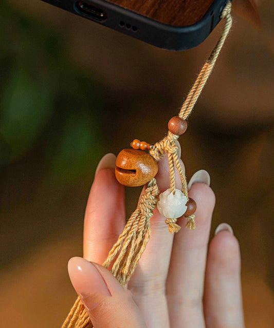 Vintage Gelb Handgewebte Pfirsich Holz Olivary Nucleus Quaste Schlüsselanhänger ZZ013