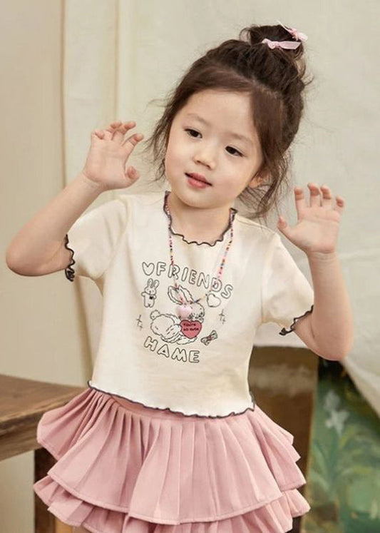 Lose Beige O-Ausschnitt Print Kinder T Shirts Sommer SS1012