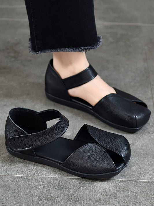 Damen Sommer Vintage Weiches Leder Gespleißt Flache Sandalen ZZ1027