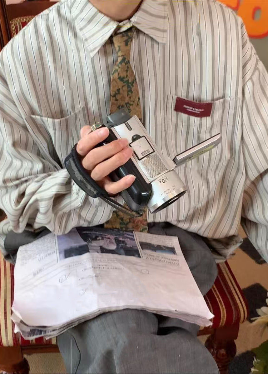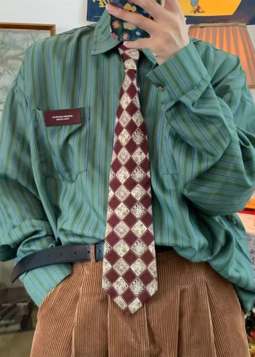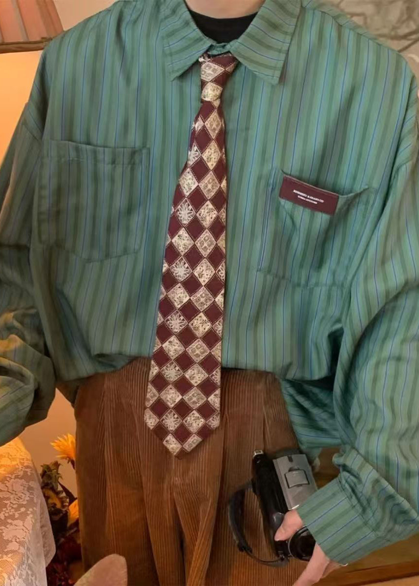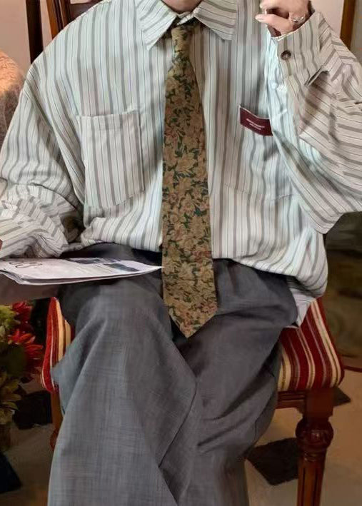Casual Apricot Striped Peter Pan Collar Pockets Oversized Cotton Men Shirts Spring