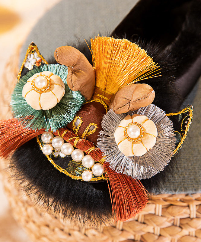 Indulge in the exquisite artistry of our Handmade Cotton Embroidered Soft Soled Tiger Head Shoes, offering both comfort and cuteness.