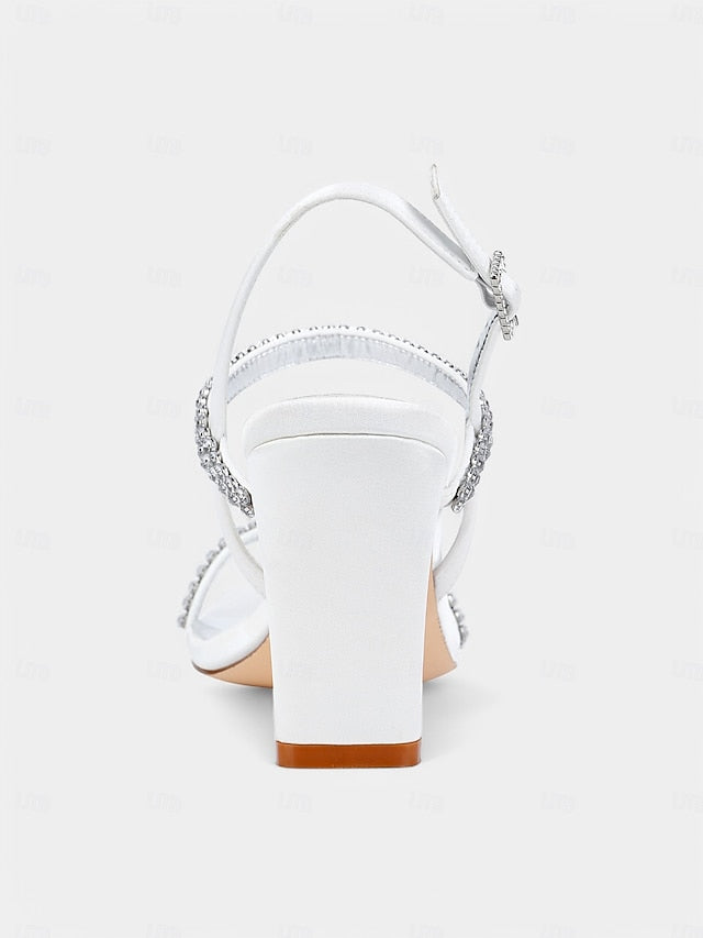 Women's White Rhinestone Block Heel Sandals – Bridal Prom