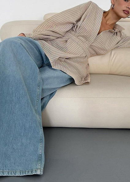 Boho Khaki Striped Linen Tunic Shirt Top Fall