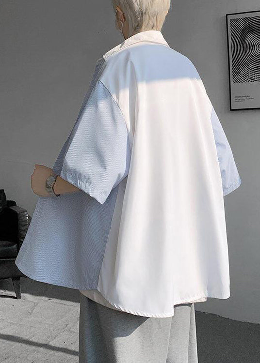 New White Striped Button Pockets Patchwork Cotton Men Shirts Summer