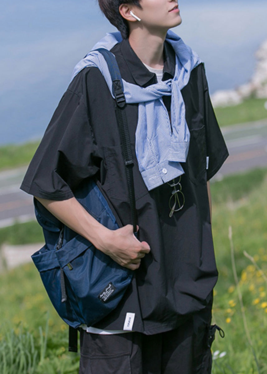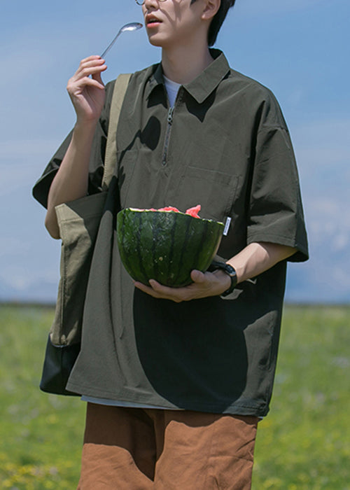 Pockets Black Zip Solid Shirt Men Polo Cotton New Summer Up