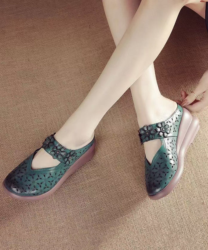 Red Wedge Cowhide Leather New Splicing Slide Sandals Hollow Out