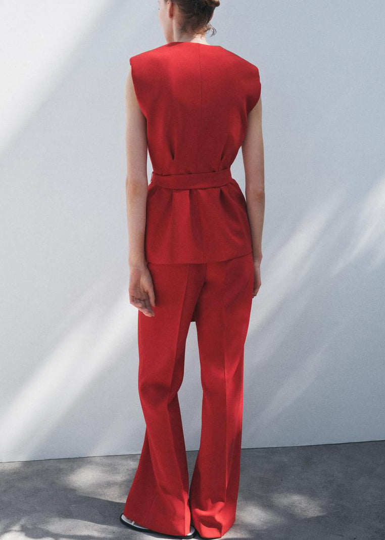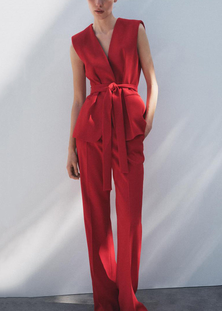 Italian White V Neck Lace Up Waistcoat And Pants Spandex Two Pieces Set Sleeveless