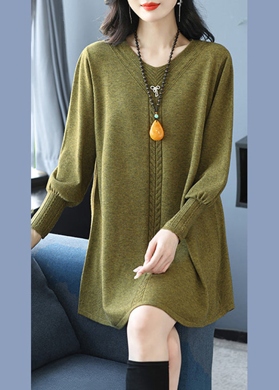 Yellow Green V Neck Cozy Cotton Knit Sweater TE031