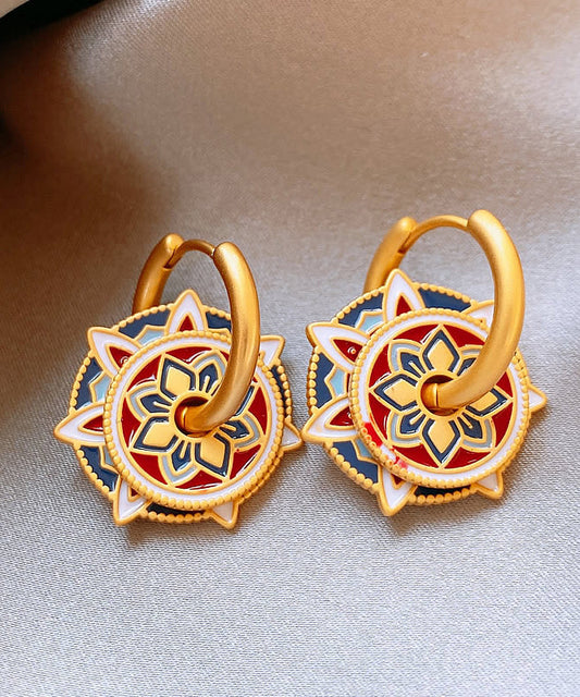Chinese Style Gold Sterling Silver Overgild Hoop Earrings II013