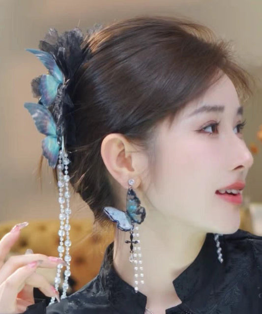 Fabric Pearl Blue Hairpin Tassel Classy Zircon