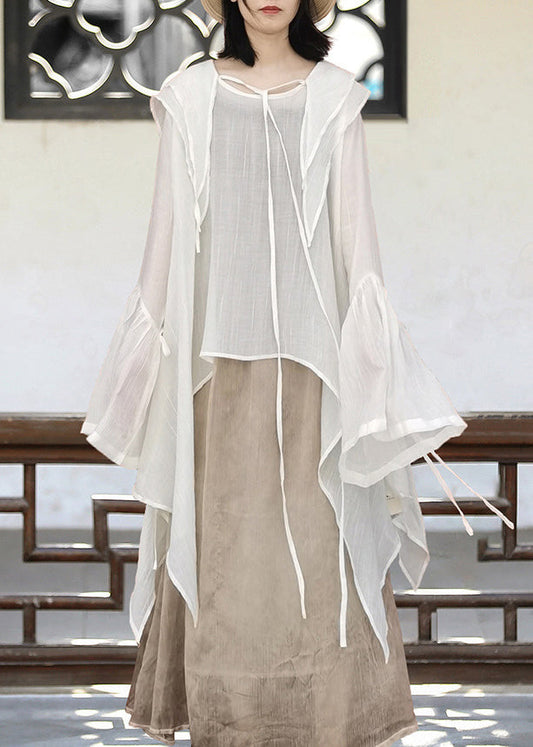 Fashion Khaki Asymmetrical Lace Up Cotton UPF 50+ Shirt Flare Sleeve LK020