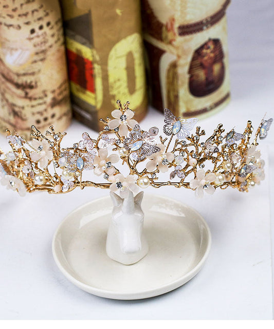 Fashion Light Gold Overgild Crystal Zircon Butterfly Floral Girl Crown IU035