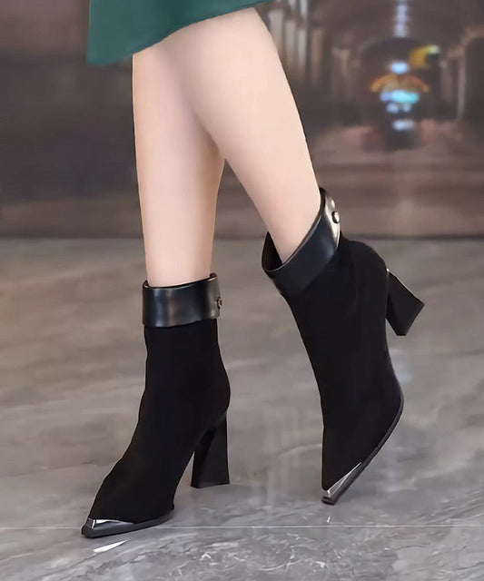 Fashion Mulberry Chunky Heel Suede Boots Splicing Pointed Toe TP019