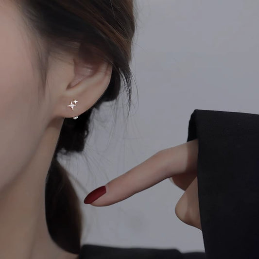 Barbell Star 925 Silver Sterling Earring Rhinestone