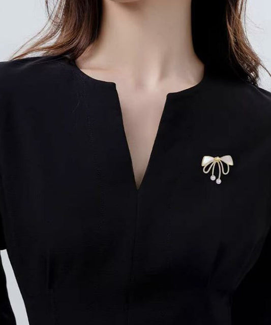 Beautiful Gold Sterling Silver Alloy Zircon Bow Pearl Brooches WP005