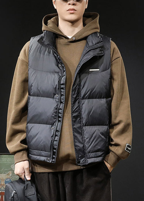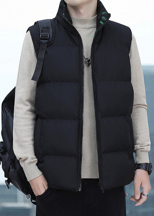French Black Stand Collar Zip Up Cotton Filled Men Waistcoat Sleeveless EQ025