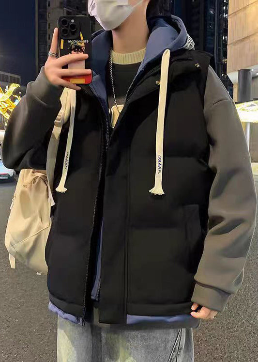 Casual Beige Hooded False Two Pieces Patchwork Men Waistcoat Winter EQ026
