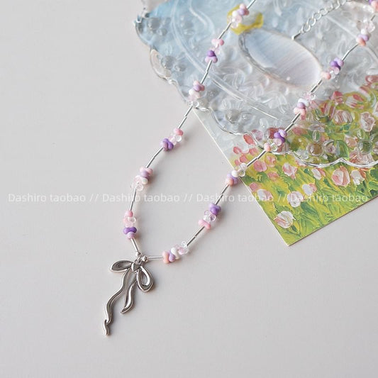 Pendant Beaded Necklace Irregular Bow