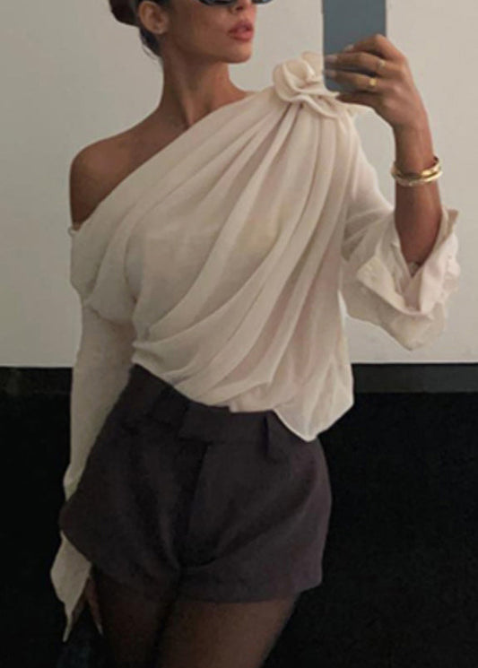 Chiffon One Floral Spring Top Apricot Brief Shoulder