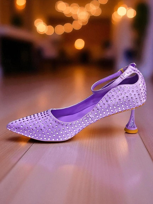 Gender: Women's, Category: Heels, Style: Elegant, Fashion, Sexy, Type: Shoes And Bags Matching Sets, Occasion: Party, Wedding, Toe Shape: Pointed Toe, Upper Materials: Sparkling Glitter, Lining Materials: Synthetic Leather, Outsole Materials: Rubber, Embellishment: Rhinestone, Season: Winter, Fall, Summer, Spring, Size Suggestion: standard size, select your usual size, Closure Type: Lace-up, Heel Height(inch): 2.36, Heel Type: Kitten Heel,