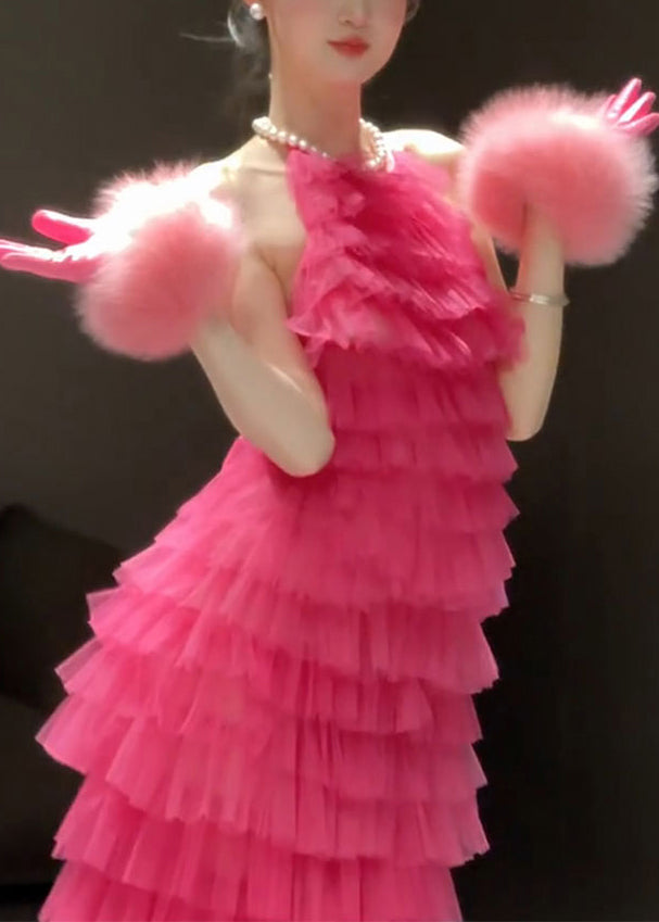 Backless Dresses Beautiful Rose Solid Pleated Sleeveless