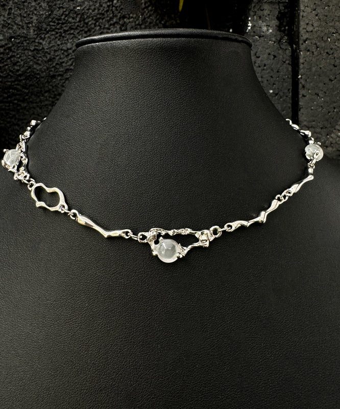 Boutique Silk Stainless Steel Cat Eye Stone Asymmetrical Pendant Necklace