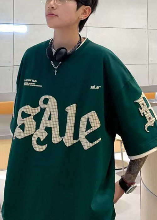 Casual Green Print False Two Pieces Cotton Mens T Shirt Summer